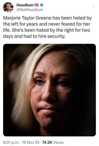 HarkMahlberg@kbin.earth · 14 days agoRep. Marjorie Taylor Greene will resign after fallout with Trumpplus-squarewww.cnbc.comexternal-linkmessage-square15linkfedilinkarrow-up1112arrow-down12