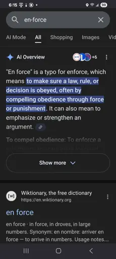 no but the ai calls it a typo of enforce, I have never seen anyone use hyphenation when intending either of enforce or en force, and if anything other than en force was intended there would be no reason to leave the wikitionary search result for it in the screenshot. defining something specifically as a typo and not listing other suggestions is also not ideal.