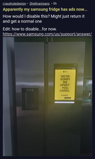 arrow-up1820arrow-down1imageRefrigerator ads are finally here!discuss.onlineByteOnBikes@discuss.online to A Boring Dystopia@lemmy.world · 21 days agomessage-square321linkfedilink