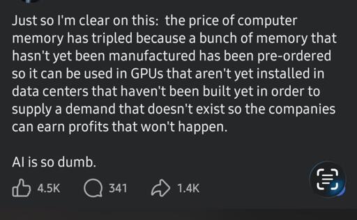 In my time I’ve certainly seen RAM prices rise and fall depending on supply constraints, same with HDD and SSD. Fair point on GPU’s, I just can’t see this data center demand remaining as so much of it seems speculative.