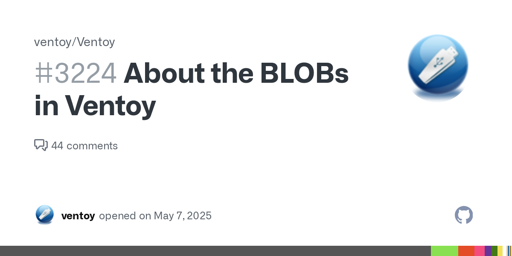 arrow-up137arrow-down1external-linkUpdate: About the BLOBs in Ventoy · Issue #3224github.comDer_Fossyler@feddit.org to Privacy@lemmy.ml · 8 months agomessage-square1linkfedilinkfile-textcross-posted to: [email protected][email protected][email protected]