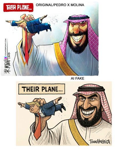 I thought AI was the top one. I actually prefer the AI one in this case. in the first one the guy’s face and nose is square and the the drawing is shitty. the second is clear and not distracting