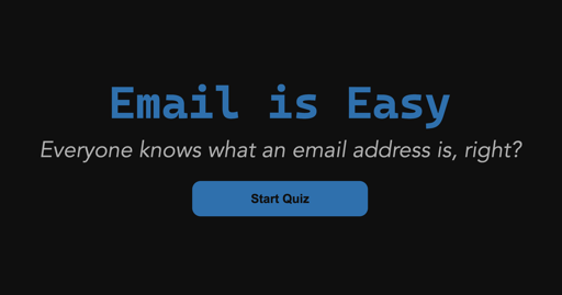 TheBigRoomXXL@leminal.space to Programmer Humor@programming.devEnglish · 5 months agoEveryone knows what an email address is, right? (Quiz)e-mail.wtfexternal-linkmessage-square153linkfedilinkarrow-up1910arrow-down18