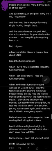 No memory is me being hyperbolic but it’s severely limited. So I feel like reading a manual line by line means I get much less out of it but it’s a large amount of time invested. So I have to factor in that my retention vs time on task is pretty skewed. It’s frustrating. I need to do something a few times to learn. Learning by reading is not great for me. But tech is a very document heavy industry