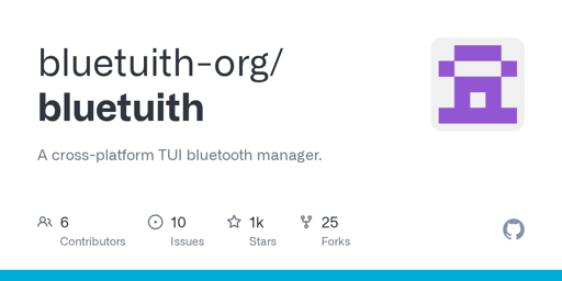 arrow-up132arrow-down1external-linkbluetuith - A TUI based Bluetooth manager v0.2.5-rc1 is releasedplus-squaregithub.comdarkhz@feddit.nl to Open Source@lemmy.ml · 4 months agomessage-square0linkfedilink