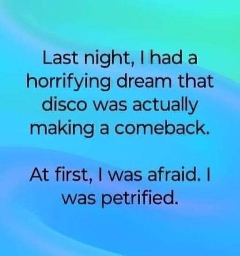 mortn@lemmy.world to memes@lemmy.world · 2 months agoDisco comebacklemmy.worldimagemessage-square0linkfedilinkarrow-up11arrow-down10